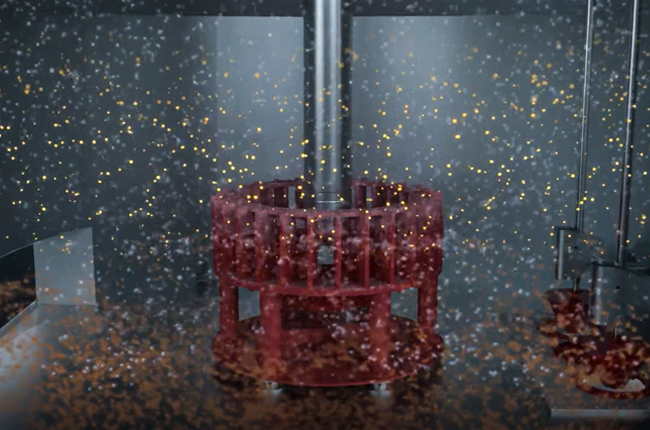 攪拌桶結(jié)構(gòu)設(shè)計(jì)合理,工作時(shí),攪拌桶的攪拌葉片設(shè)計(jì)為扇形,這樣一來可攪拌時(shí)與介質(zhì)接觸面積大,從而達(dá)到對(duì)物料攪拌均勻。