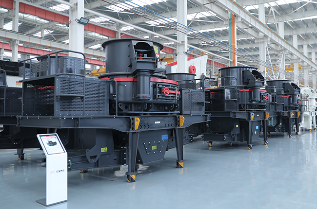 VSI制砂機運用先進的選擇性破碎和解理破碎原理,直接對物料施加足夠動能,并通過沖擊將動能轉(zhuǎn)換成克服物料所需的破碎能而破碎。物料基本沿其自然的紋理面、解理面斷裂,粒形好、自身消耗低。全中心進料:物料落入進料斗,經(jīng)中心進料孔進入高速旋轉(zhuǎn)的甩輪,在甩輪內(nèi)被迅速加速,其加速度可達數(shù)十倍重力加速度,然后高速從甩輪內(nèi)射出,首先與反彈后自由下落的另一部分物料進行撞擊,然后一起沖擊到物料襯層(石打石)或反擊塊(石打鐵)上,被反彈斜向上沖擊到渦流腔的頂部,又改變其運動方向,偏轉(zhuǎn)向下運動,又與從葉輪流道發(fā)射出來的物料撞擊形成連續(xù)的物料幕。這樣,一塊物料在渦流破碎腔內(nèi)受到兩次、或更多次撞擊、摩擦和研磨破碎作用。被破碎的物料由下部排料口排出。