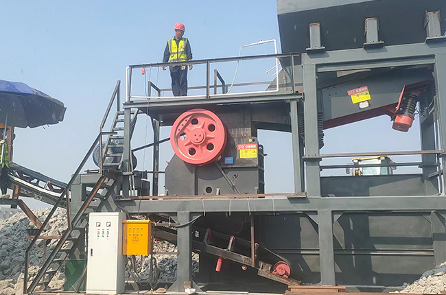 電動(dòng)機(jī)驅(qū)動(dòng)皮帶和皮帶輪,通過(guò)偏心軸使動(dòng)顎上下運(yùn)動(dòng),當(dāng)動(dòng)顎上升時(shí),肘板與動(dòng)顎間夾角變大,從而推動(dòng)動(dòng)顎板向固定顎板接近,與次同時(shí),物料被壓碎或劈碎,達(dá)到破碎的目的;當(dāng)動(dòng)顎下行時(shí),肘板與動(dòng)顎夾角變小,動(dòng)顎板在拉桿、彈簧的作用下,離開固定顎板,此時(shí)已破碎物料從破碎腔下口排出。隨著電動(dòng)機(jī)連續(xù)轉(zhuǎn)動(dòng)而破碎機(jī)動(dòng)顎作周期運(yùn)動(dòng)壓碎和排泄物料,實(shí)現(xiàn)批量生產(chǎn)。